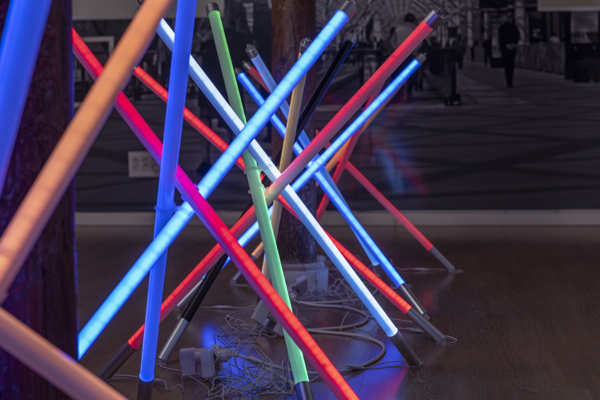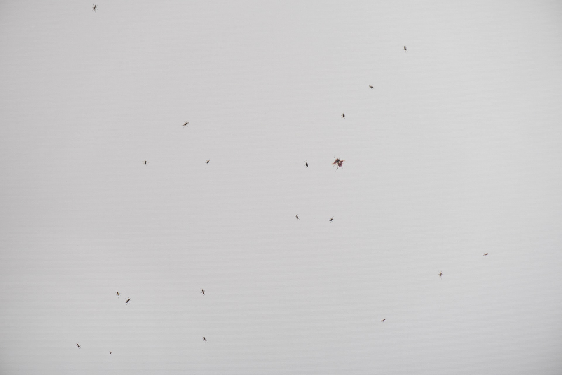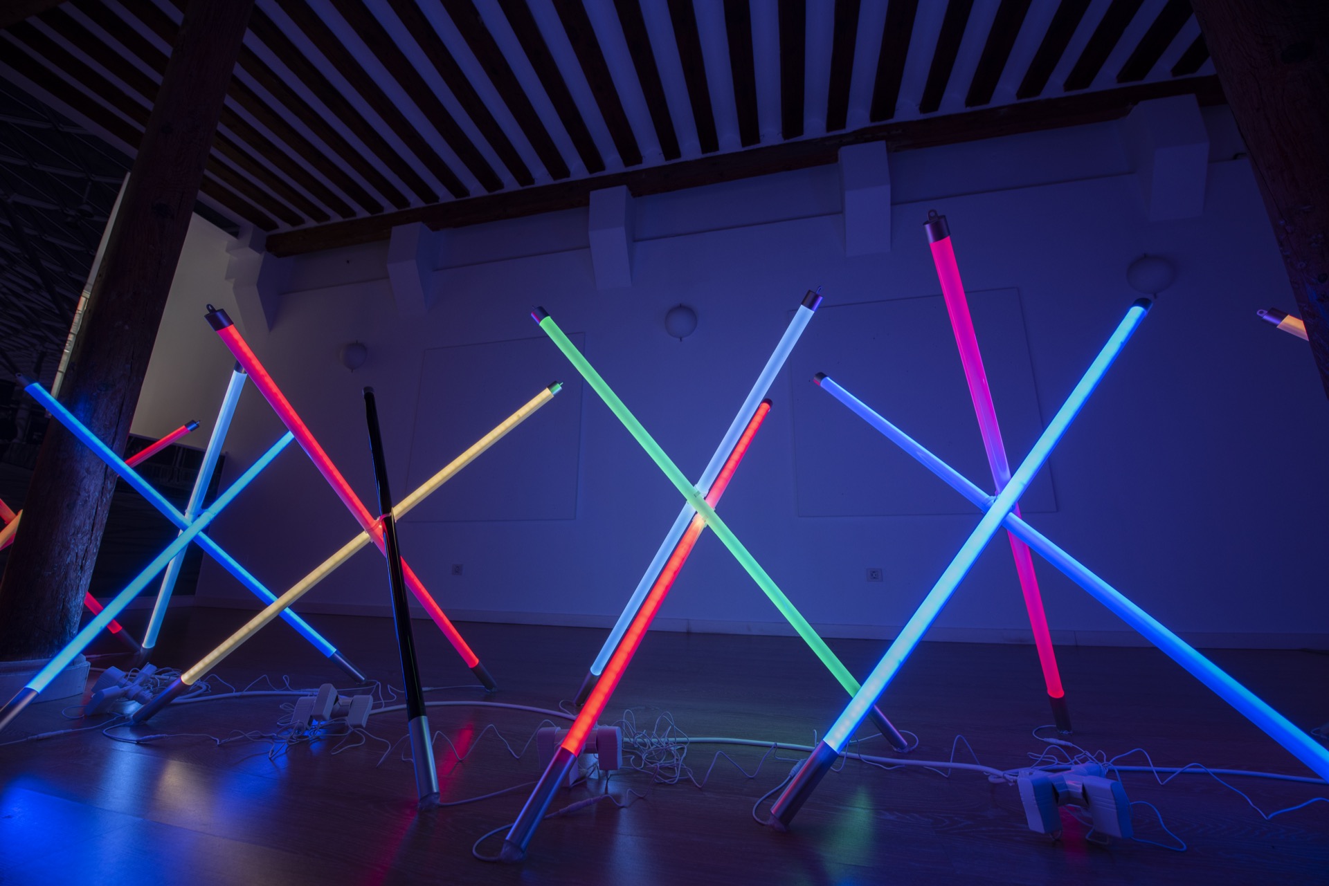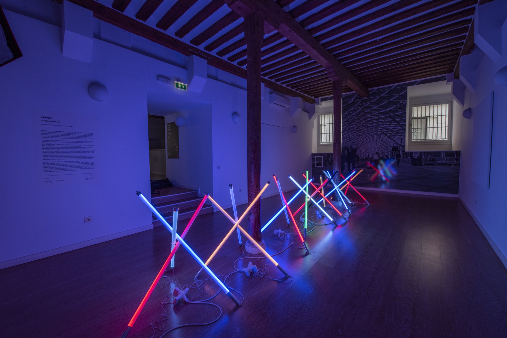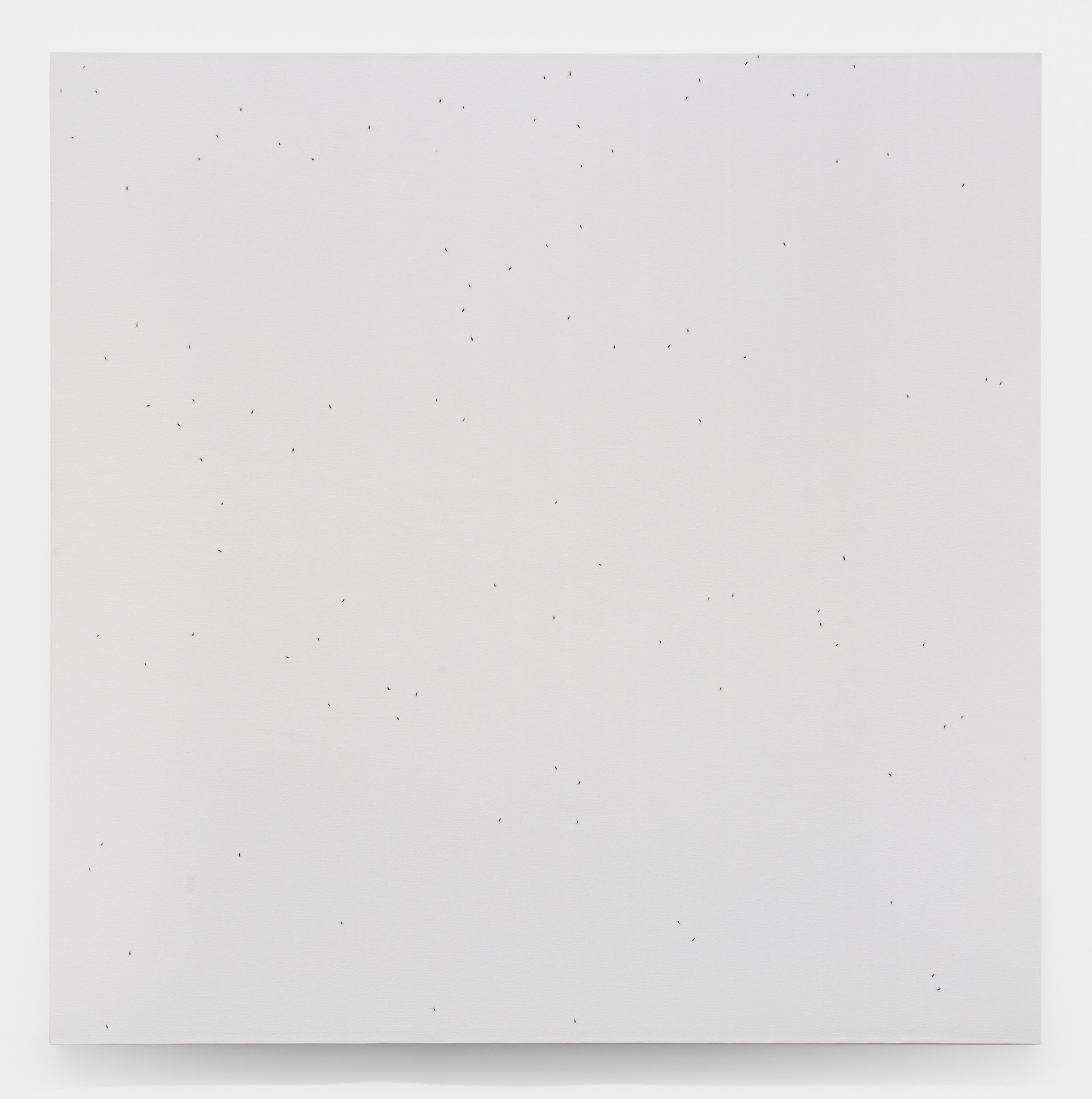 By resorting to metaphor, Giuseppe Lana concentrates the comparison on a particular insect: the mosquito. By retracing the geographical analysis between migration and adaptation, this tiny being, like humans, moves in masses and is constantly searching for new areas. It moves from one place to another, forming enormous communities, colonies that migrate primarily for survival, but also driven by climate changes. Within the exhibition rooms of the IIC in Madrid, with the supported of the Galleria Giorgio Persano of Turin, the artist presents a series of blank pages dotted with small silent presences, a procession of insects that populate a virtual space, suggesting a transit that, in the apparent miniature scale, hides the gigantic and dramatic scope of a phenomenon that inexorably marks the fate of many people and corrodes consciences. The interplay between the parts, the use of metaphor to post an argument without revealing, and the subtle deception of fiction are all elements of a narrative that Giuseppe Lana offers to the viewer’s gaze, retracing a theme, that of migration, which has been at the centre of artists’ reasoning for some time. However, Lana takes a step back, does not offer reasons or seek solutions, but only delicately observes, limiting himself to looking at something that has enormous significance. He observes the process, collects information, senses the critical issues; the facts are there for everyone to see, they are in everyone’s daily life, yet they seem so distant, just an echo for many. This is why it is necessary to highlight, to bring to the fore; perhaps it is for this reason that Lana introduces the second element of the narrative, which is the luminous one, as if to signify the absolute need to ‘bring to light’, to facilitate vision, but at the same time to unsettle, to dazzle. The luminous elements of the installation proposed by the artist are also a sort of delimitation of space. They are both a source of light and a definition of a boundary; they are another metaphor and at the same time an oxymoron. They are an extension of the blurred outline. Thus, for Lana, rhetorical figures and formal outcomes are complex tools, just as complex is the object of his reflection. Alternation between lightness of form and gravity of argumentation compose a precise rhythm; they constitute the plot with which Lana weaves the story.